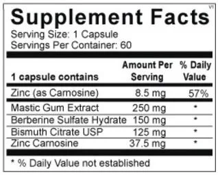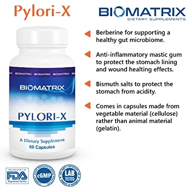 Pylori-X contains bismuth and mastica, which can assist in normalizing the gut microbiome.